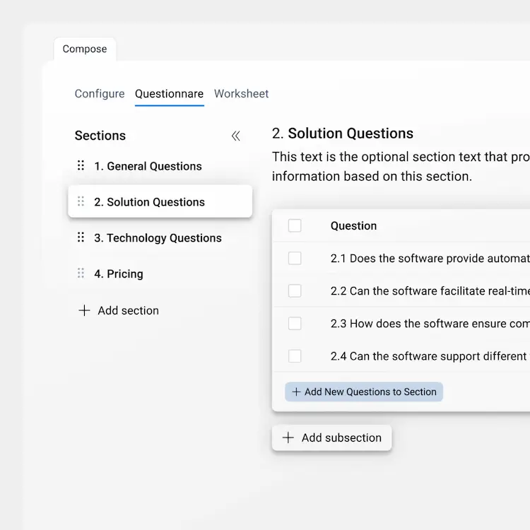Generate tailored RFP questions at the click of a button with Levelpath's AI Agents. Refine on-demand to ensure comprehensive analysis.