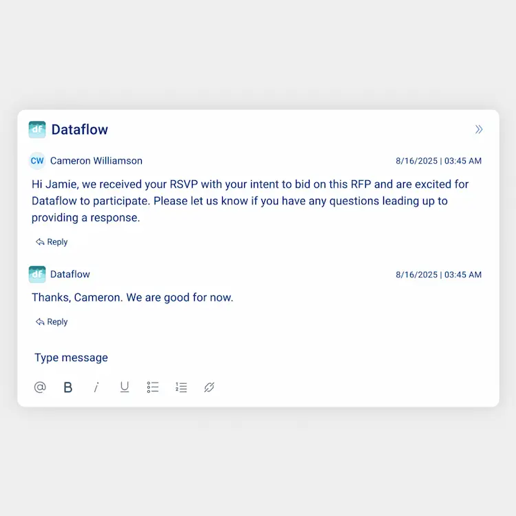 Connect directly with suppliers through 1:1 messaging to ask additional questions or through announcements to post updates on the event.