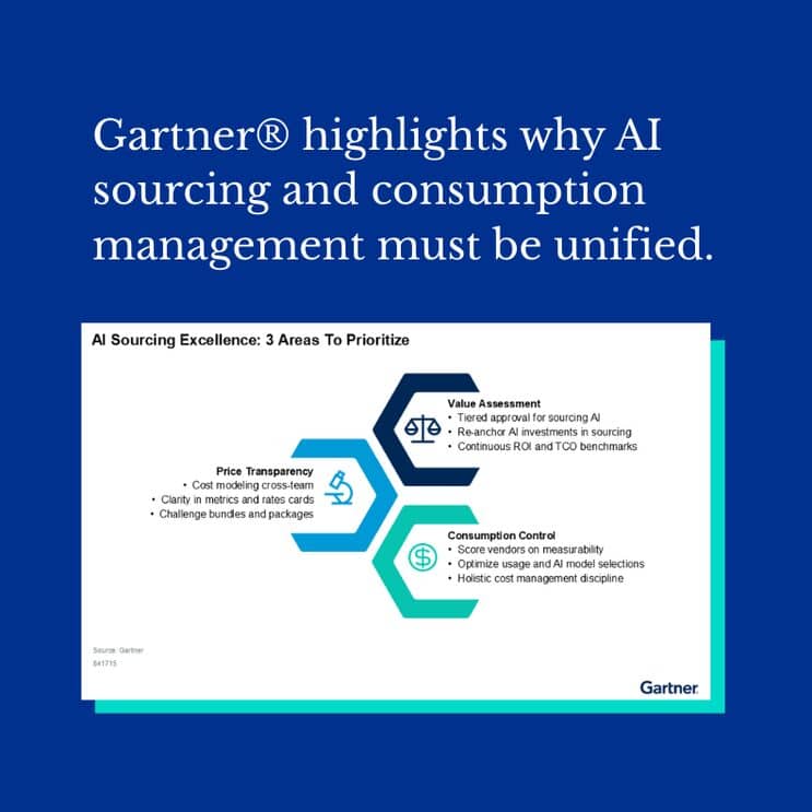 This new Gartner report highlights why AI sourcing and consumption management must be unified. With a single flow across intake, sourcing, contracting, and supplier management, procurement can finally gain the visibility and control needed to prevent cost overruns and maximize AI value.