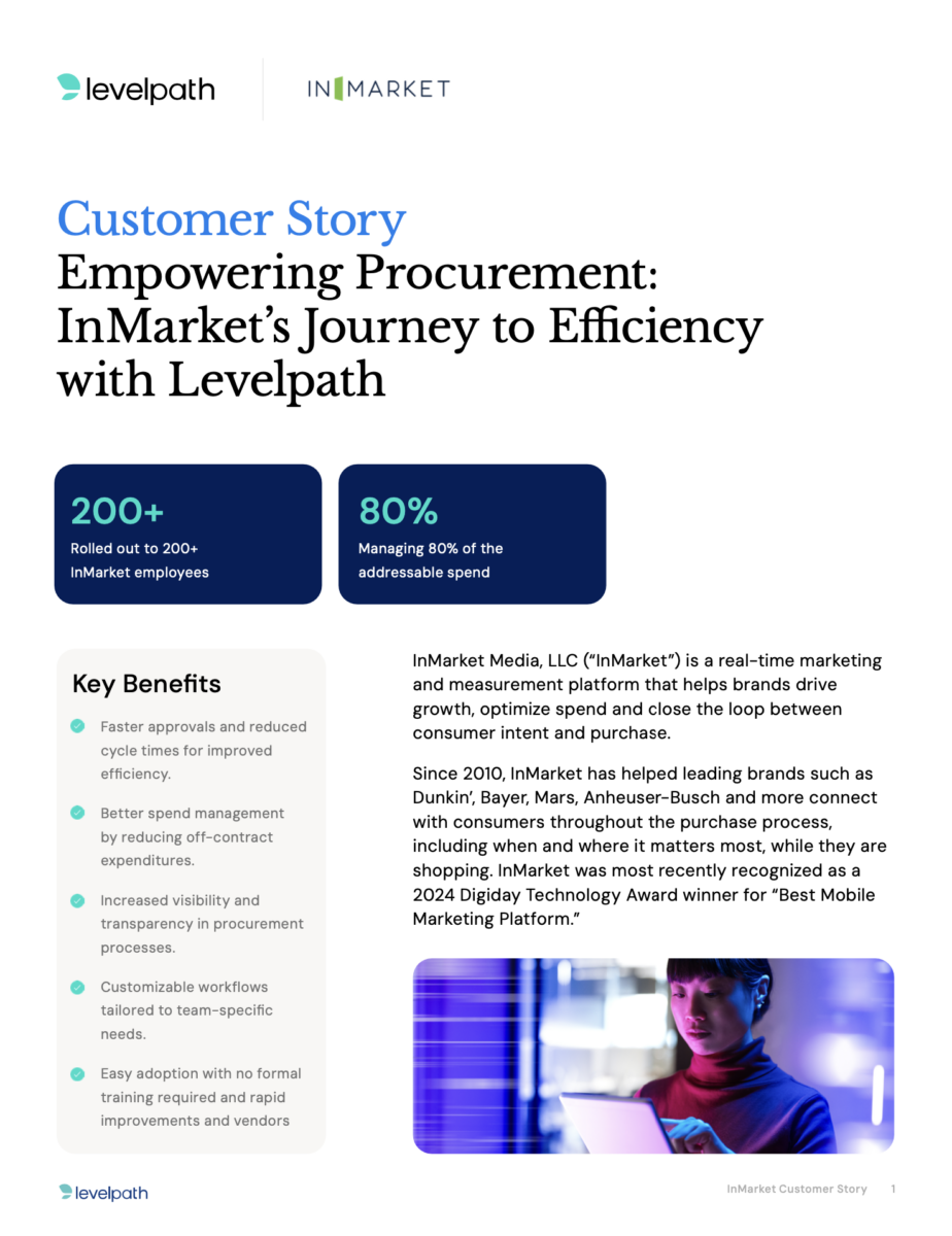 “Levelpath has been key to the continued evolution and success of Procurement at InMarket. The platform is incredibly flexible, allowing us to better meet and respond to the dynamic needs of different teams throughout the organization,” said Leiken.